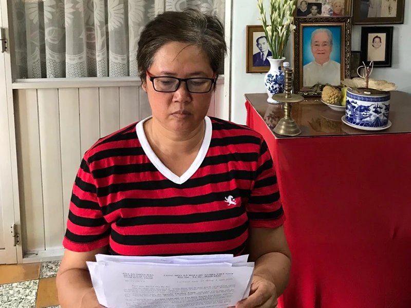 Bà Lê Thị Bé Âu, người con nuôi 31 tuổi của cụ Nguyễn Thị Huệ. Ảnh: PL