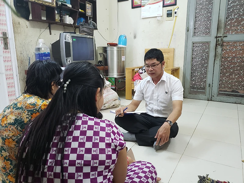 Mẹ con chị H. trao đổi với luật sư Quốc Cường. Ảnh: TÂM AN
