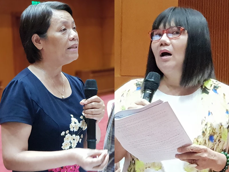 Bà Bùi Thị Lệ Phương: “Luật sư không học kế toán thì làm sao giúp doanh nghiệp được”. Bà Đặng Thị Bình An: “Nếu phải thuê cả dịch vụ đại lý thuế và kế toán thì tốn kém chi phí”. Ảnh: CHÂN LUẬN