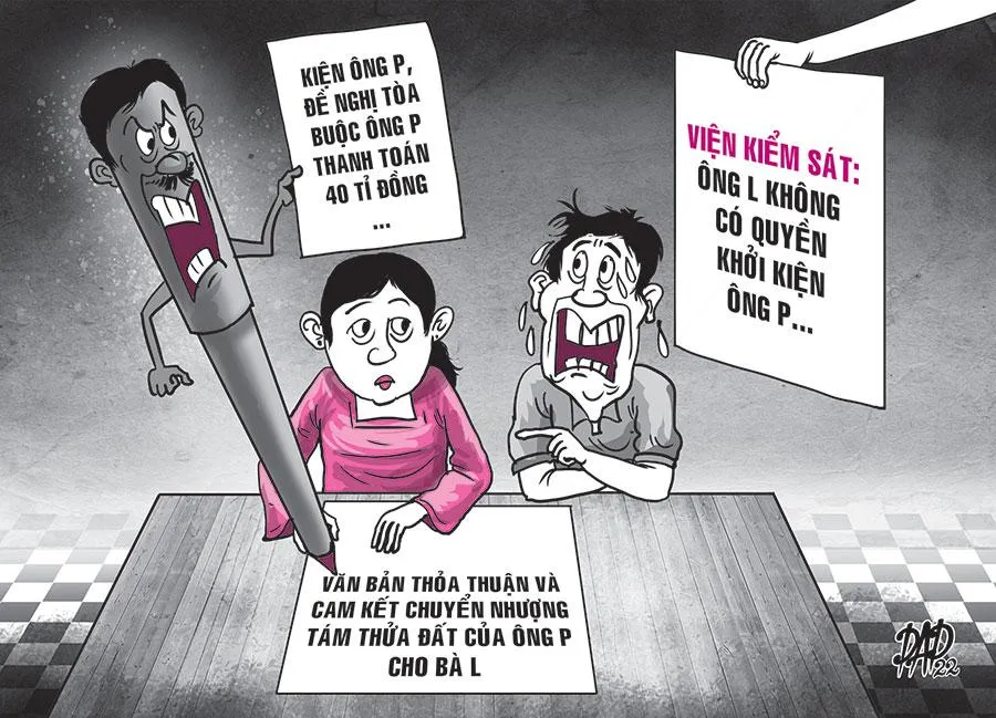 Theo VKS, văn bản thỏa thuận và cam kết chuyển nhượng được ký giữa ông Phương và bà T là giao dịch dân sự. Giao dịch này không phát sinh quyền và nghĩa vụ dân sự đối với ông L. Bà T và ông L đều xác định bà T mới là người có quyền khởi kiện.