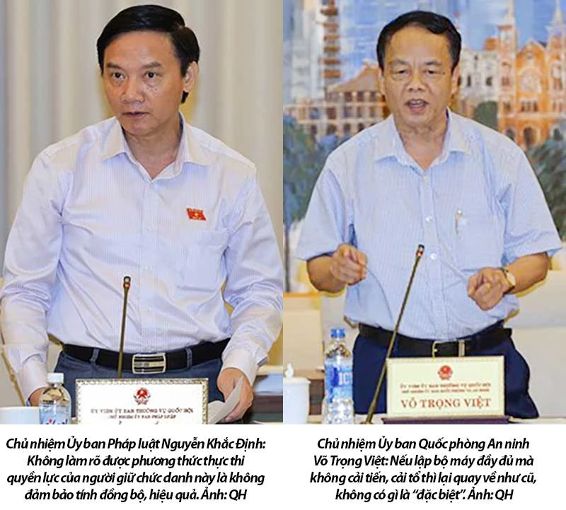 Cho ý kiến vào dự luật, Chủ nhiệm Ủy ban Quốc phòng An ninh Võ Trọng Việt ủng hộ việc trao quyền cho trưởng đặc khu nhưng quy định rõ người này được làm gì, không được làm gì, trách nhiệm ra sao. “Nếu lập bộ máy đầy đủ mà không cải tiến, cải tổ thì lại quay về như cũ, không có gì là “đặc biệt”. Vì vậy việc tổ chức chính quyền địa phương tại các đặc khu phải tránh tình trạng “cha chung không ai khóc”. Đồng thời cũng phải nêu rõ trách nhiệm người đứng đầu, có cơ chế giám sát để loại trừ việc “ông một mình che cả bầu trời”, ông Việt nói và đề nghị việc lập bộ máy tại các đặc khu phải tránh được tình trạng trì trệ, “thay vỏ nhưng không thay ruột”.