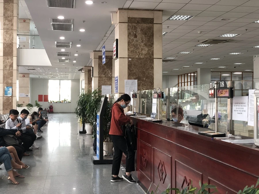 Hiện nay người cho thuê nhà có doanh thu trên 100 triệu đồng/năm phải nộp thuế 10 %. Trong ảnh: Người dân, doanh nghiệp đang nộp thuế. Ảnh: QH
