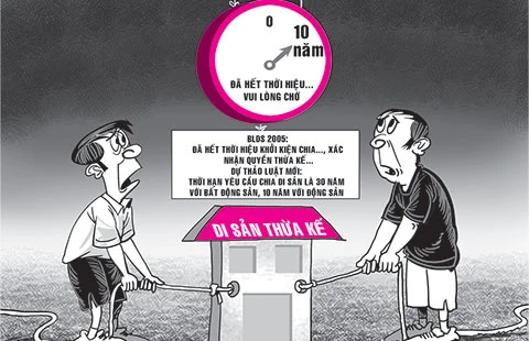 BLDS hiện hành quy định thời hiệu khởi kiện để người thừa kế yêu cầu chia di sản, xác nhận quyền thừa kế của mình hoặc bác bỏ quyền thừa kế của người khác là 10 năm kể từ thời điểm mở thừa kế. Theo nhiều chuyên gia, thực tế đang tồn tại một bất cập là có nhiều tài sản thừa kế bị tranh chấp nhưng do hết thời hiệu khởi kiện nên bị “treo” và người thừa kế tài sản không thể đăng ký quyền sở hữu.