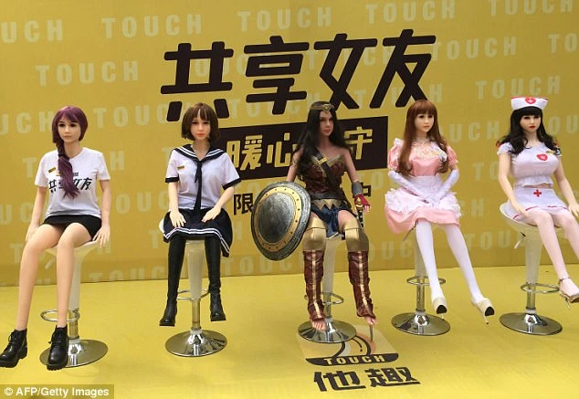 Các búp bê tình dục được trưng bày tại chi nhánh công ty ở Bắc Kinh. Ảnh: Getty