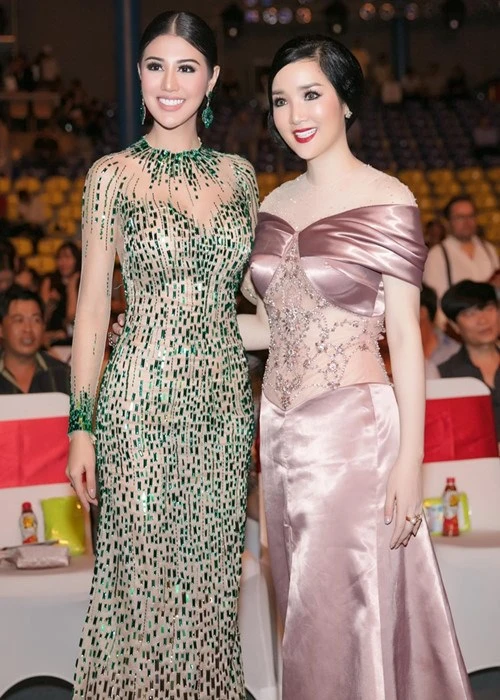 Giáng My đánh giá rất cao tố chất hoa hậu của đương kim Hoa hậu Hòa bình Thế giới 2016 (trái). Ảnh: TNO