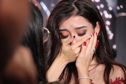 Huyền My khóc trong hậu trường. Ảnh: LĐO