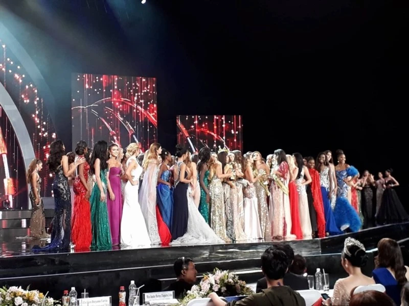 Huyền My không xuất hiện trên sân khấu để chúc mừng người đẹp Peru đăng quang. Ảnh: LĐO