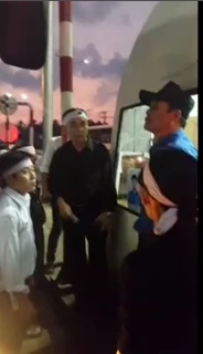 Cảnh cãi nhau giữa người đưa tang với nhân viên của trạm thu phí . Ảnh cắt từ Clip