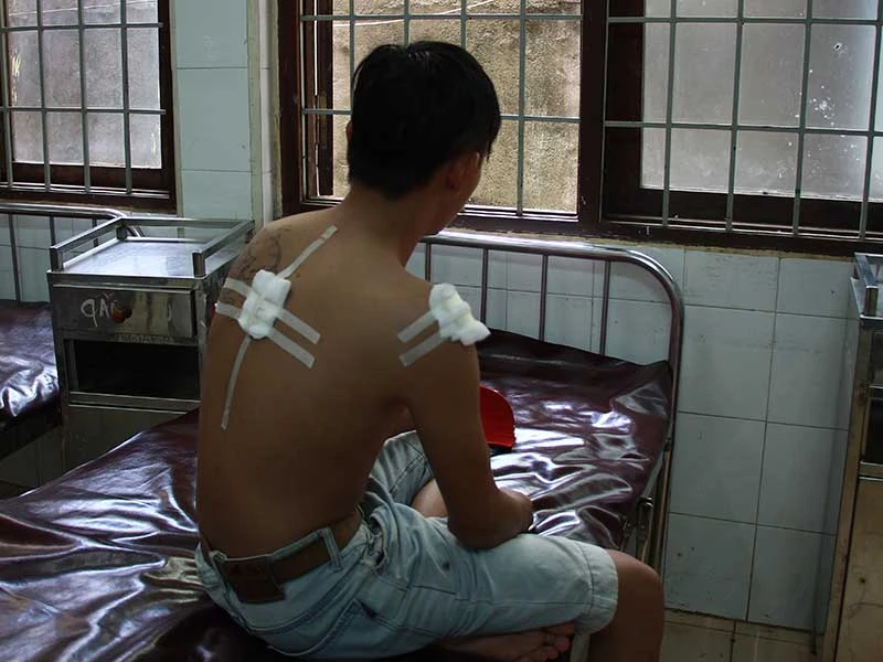 Một thanh niên bị công an xã Ea Kao, TP Buôn Ma Thuột bắn bị thương tối 16-6-2017. Ảnh: CTV