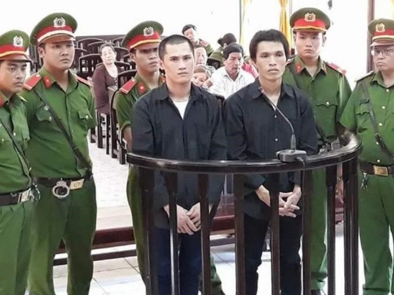 Bị cáo Linh (phải) cùng đồng phạm tại phiên xử bị tuyên án tử hình. Ảnh: CTV
