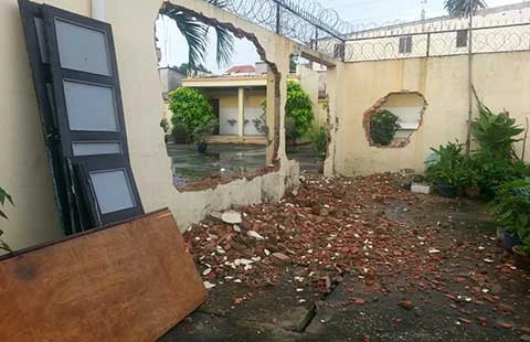 Nhà của ông Lê Văn Bé trong khuôn viên trường bị đập phá, bể cửa kính vào khuya 9-8. Ảnh: CT