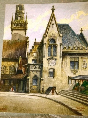 Bức tranh có tên "Standesamt und Altes Rathaus Muenchen" tạm dịch là Văn Phòng Đăng Ký Dân Sự & Tòa Thị Chính Cũ ở Munich, là một trong 2.000 tác phẩm nghệ thuật của Hitler từ năm 1905 đến năm 1920. Trong cuốn tự truyện của mình mang tên “Mein Kampf”, Hitler đã từng viết về hy vọng khi còn trẻ của mình là trở thành một nghệ sĩ. Nhưng nó đã bị từ chối nhiều lần trước khi bị dập tắt hoàn toàn bởi Học viện Mỹ thuật Viên tại Vienna.