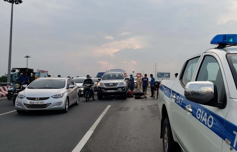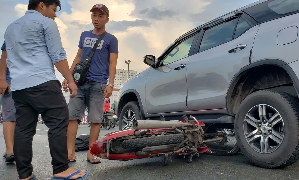 Khi vừa đổ dốc cầu Bình Lợi (quận Thủ Đức) thì bị xe bán tải 51D-239.29 tông mạnh từ phía sau.