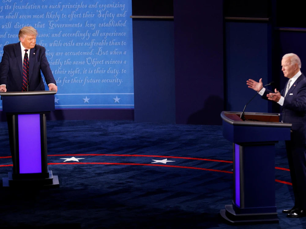 Tổng thống Donald Trump và ứng viên Joe Biden trong cuộc tranh luận đầu tiên. Ảnh: FRANCE 24