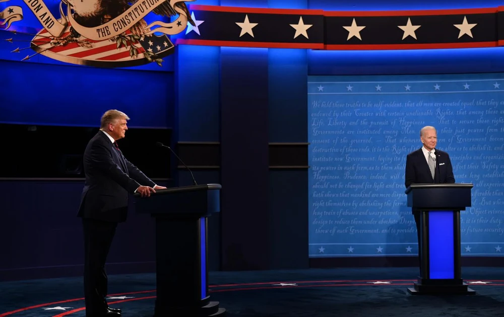 Phiên tranh luận tổng thống Mỹ đầu tiên vào đêm 29-9. Ảnh: AFP