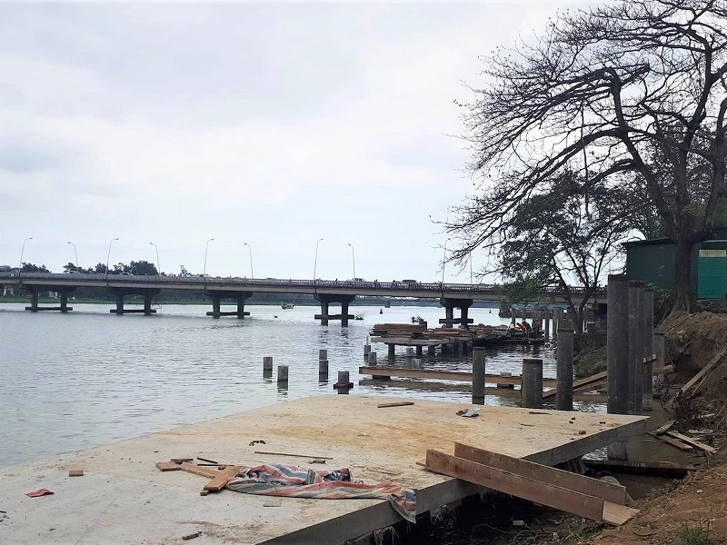 Công trình đường đi bộ Nam sông Hương đang thi công.