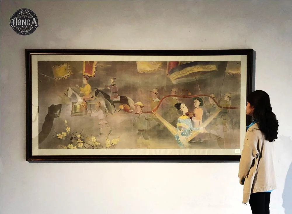 Bức tranh lụa Vinh quy bái tổ. Ảnh: ĐÔNG A