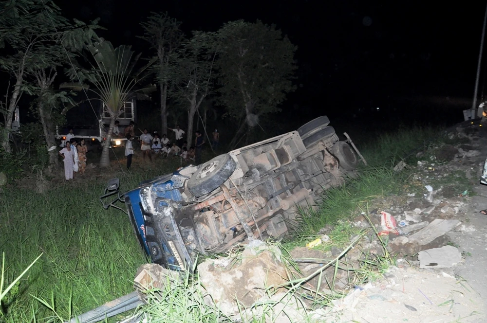Tại hiện trường, xe tải đã tông đổ khoảng 30 mét dải taluy thép, tông gãy trụ điện bên đường và bị lật ngửa cách đó 2 m. Tài xế bị mắc kẹt trong ca-bin, rất may không bị thương tích nặng. Lực lượng CSGT đã có mặt kịp thời để điều tiết giao thông khu vực.