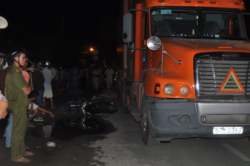 Nhiều người dân chứng kiến cho biết, ông Thơm né vũng nước bên đường và liền bị container đi sau tông chết.