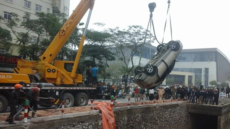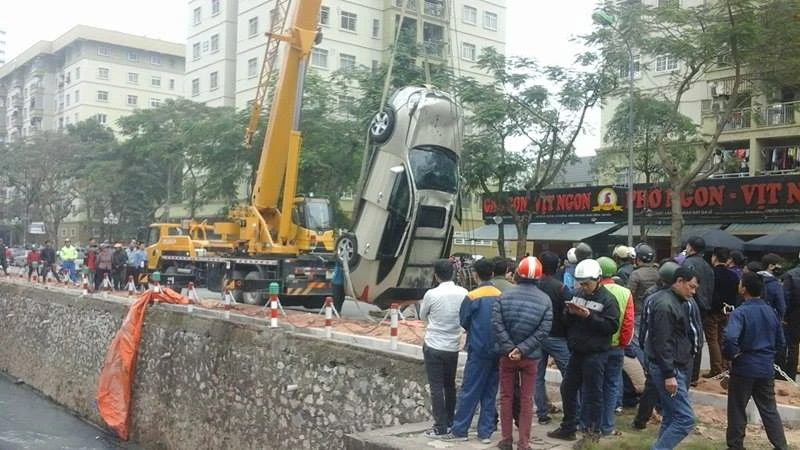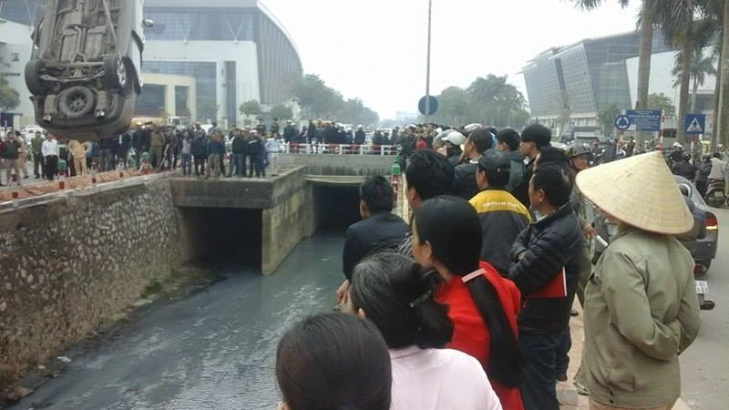 Theo các nhân chứng, vào thời điểm trên chiếc ô tô Hyundai biển số Hà Nội đang di chuyển trên đường Nguyễn Cơ Thạch, hướng Mai Dịch - BV Thể thao. Khi đến đoạn gần nhà 36 Nguyễn Cơ Thạch, do tránh một chiếc xe máy đi cùng chiều, xế hộp này đã đâm vào dải phân cách giữa đường và mương nước phía dưới.