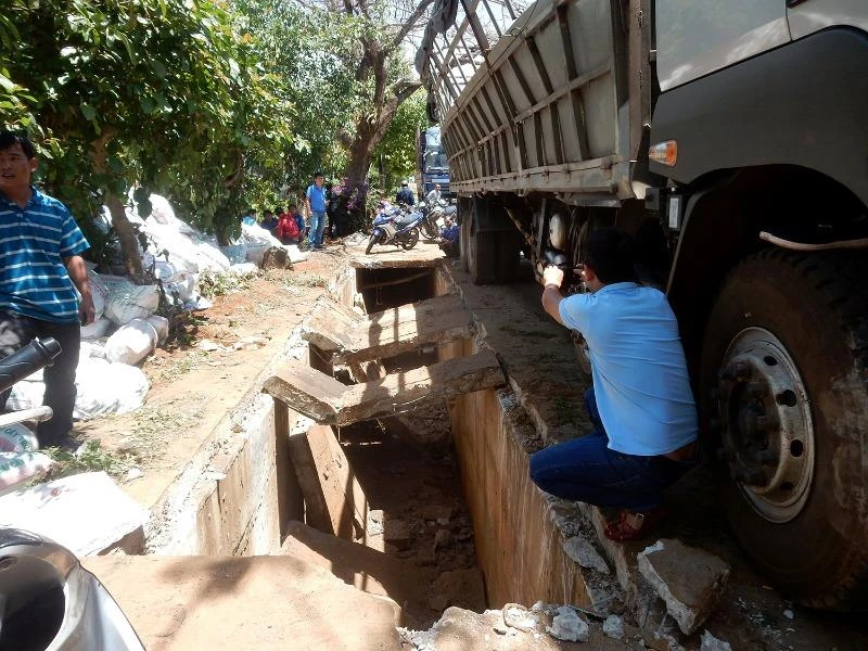 Theo lời kể của tài xế Sự, thời điểm trên, trong lúc tránh xe tải đi ngược chiều, anh đã đánh lái sát vào lề đường thì bất ngờ cống sập. "Trên xe lúc đó chở chưa tới 14 tấn hàng, trong khi tải trọng cho phép là 17 tấn. Điều tôi không hiểu đó là cống thoát nước ở đây sát mép đường nhưng không hề có cọc tiêu, biển báo để tôi cũng như nhiều người biết mà tránh. Cũng may, vụ tai nạn này không gây thiệt hại cho ai, chứ nếu không thì hậu quả ai gánh chịu” - anh Sự bức xúc.