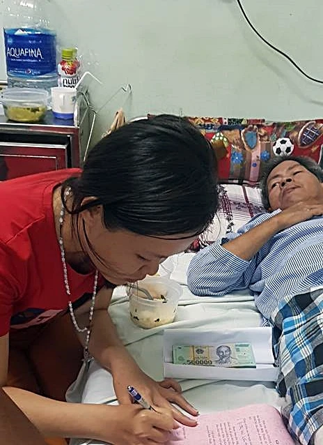 Tối 4-9, đại diện báo Pháp Luật TP.HCM phối hợp cùng Tổ Công tác xã hội BV đa khoa Bình Thuận đã trao tiền cho ông Trần Quốc Dũng, người đàn ông bị tai nạn gãy chân trong bài viết “Mượn xe chở khoai mì, cô gái chở cha vượt 70 km đi bệnh viện”.