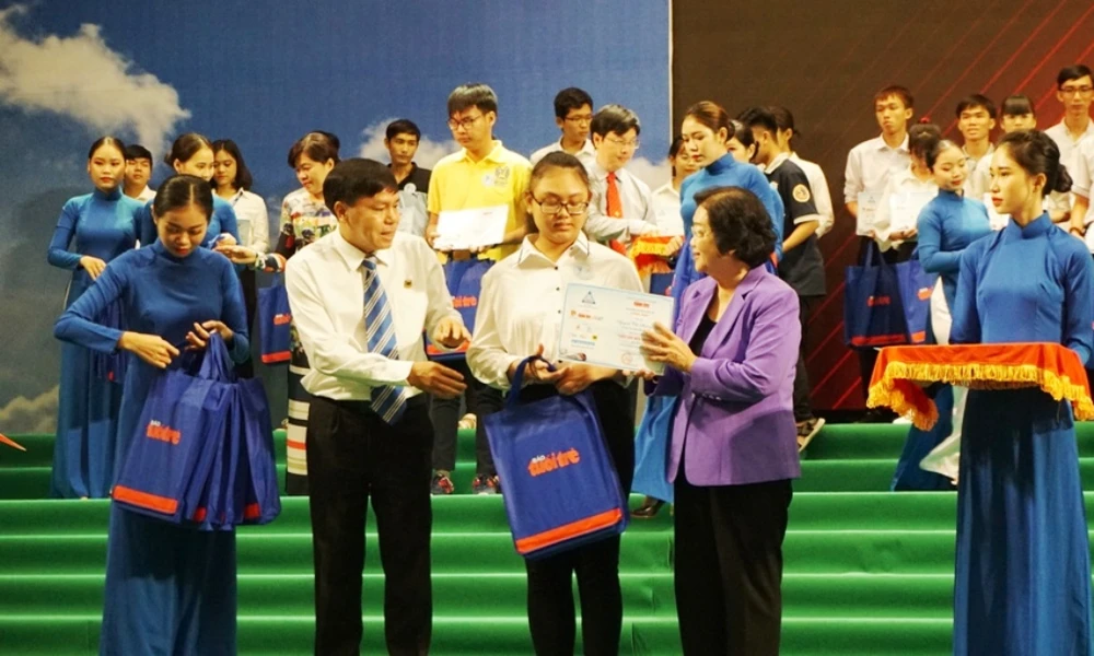 Sáng 12-10, báo Tuổi Trẻ phối hợp cùng Thành đoàn TP.HCM, Đài Truyền hình TP.HCM tổ chức lễ trao học bổng cho 150 tân sinh viên có hoàn cảnh khó khăn của bảy tỉnh, thành khu vực Đông Nam bộ và tổng kết học bổng “Tiếp sức đến trường”.