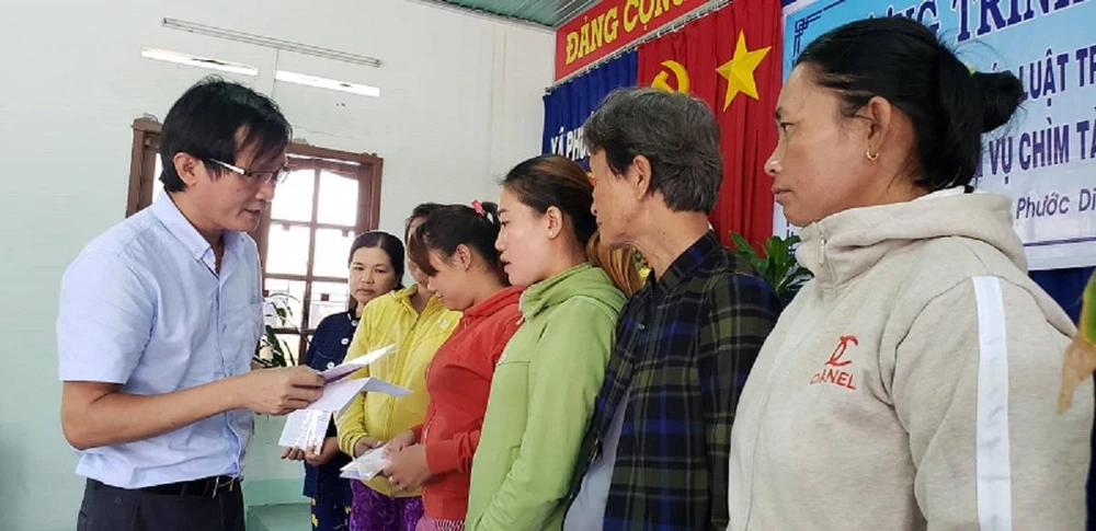 Sáng 20-7, Báo Pháp Luật TP.HCM cùng lãnh đạo xã Phước Diêm (Ninh Thuận) trao 290 triệu đồng cho gia đình 5 hộ dân trong vụ chìm tàu xảy ra ngày 2-7.