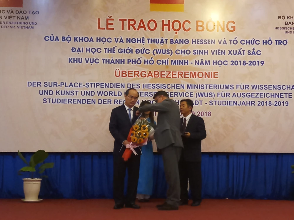 Phát biểu tại buổi lễ, ông Boris Rhenin, Bộ trưởng Bộ Khoa học và Nghệ thuật bang Hessen CHLB Đức, nói: “Tôi rất vui mừng vì hôm nay được thay mặt cho Bộ trao học bổng cho các em sinh viên xuất sắc tại TP.HCM. Với những suất học bổng được trao tặng, tôi hy vọng các em sinh viên sẽ giải quyết một phần những khó khăn trong cuộc sống để tiếp tục theo đuổi ước mơ của mình trên con đường học tập”.