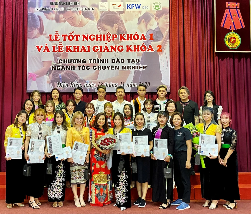 Lễ trao chứng chỉ nghề tóc cho phụ nữ khó khăn ở tỉnh Điện Biên