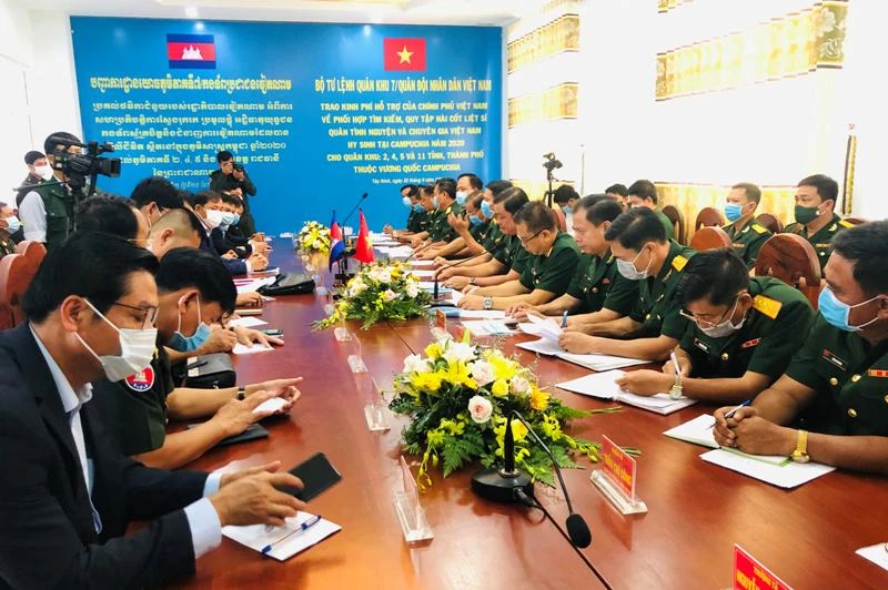 Ngày 25-9, tại Nhà khách đối ngoại, Bộ Tư lệnh Biên Phòng (Cửa khẩu quốc tế Mộc Bài, huyện Bến Cầu, tỉnh Tây Ninh), Uỷ Ban chuyên trách Chính phủ nước CHXNCN Việt Nam đã trao gần 200.000 USD kinh phí hỗ trợ tìm kiếm, quy tập hài cốt liệt sĩ và chuyên gia Việt Nam hy sinh trong các thời kỳ chiến tranh, giai đoạn 20 (2020-2021), cho các quân khu và tỉnh/thành thuộc Vương quốc Campuchia.