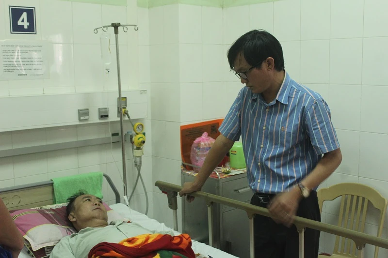 Nhà báo Đức Hiển, Tổng thư ký tòa soạn báo Pháp Luật TP.HCM, thăm hỏi thầy Hải tại BV Trung ương Huế. Ảnh: N.DO