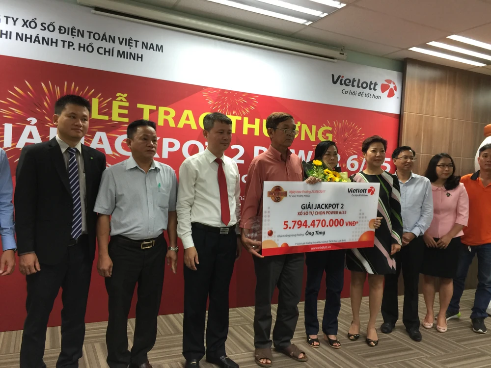 Ông Tùng (quận 6, TP.HCM) đã mua vé tự chọn ở một điểm bán vé tại Củ Chi, TP.HCM. Vé trúng Jackpot ngày 21-9 chứa dãy số trúng thưởng là 09 - 12 - 16 - 24 - 43 - 39, số tiền trúng thưởng gần 5,8 tỉ đồng. Số tiền thuế mà người trúng thưởng phải nộp ngân sách khoảng 580 triệu đồng.