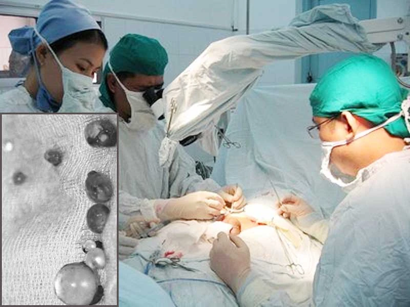 Các bác sĩ BV Bình Dân phẫu thuật cho bệnh nhân gặp biến chứng do bơm silicon. Ảnh: Hải Âu
