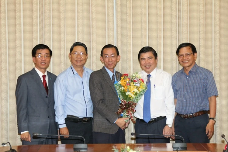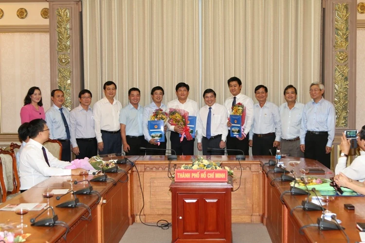 Chủ tịch UBND TP.HCM Nguyễn Thành Phong trao quyết định bổ nhiệm ông Trần Hoàng Ngân (đứng ở giữa).