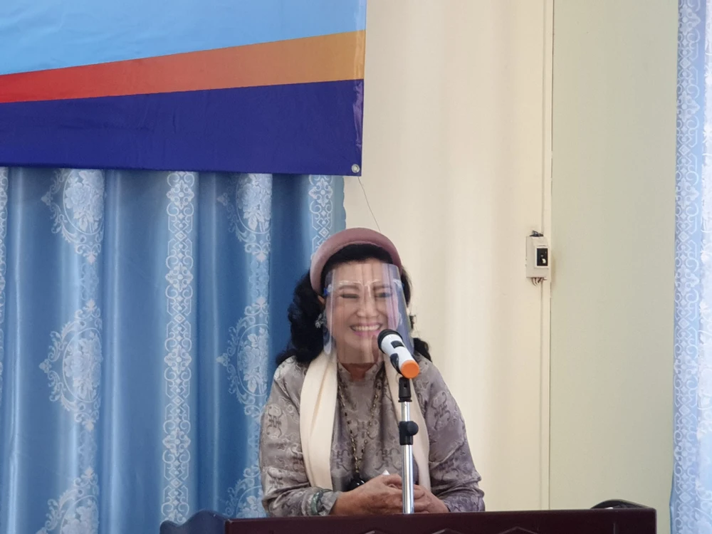 Tại chương trình NSND Kim Cương cũng gửi lời động viên đến 10 em nhỏ, đại diện cho 150 em được nhận hỗ trợ đợt này, mỗi em 10 triệu đồng và cho biết "các con sẽ không bị bỏ quên". Ảnh: HÀ KIỀU.
