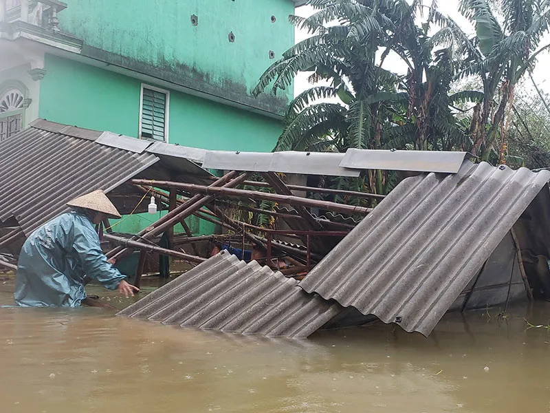 | “Nhà sập mất rồi, còn đâu!” Chị Nguyễn Thị Xí (đội 6, thôn Phú Kinh, xã Hải Phong, huyện Hải Lăng, Quảng Trị) làm công nhân trên địa bàn huyện, còn chồng làm thuê ở Hà Nội. Chồng đi làm xa, chị và con gái bốn tuổi sống ở căn nhà tạm tại thôn Phú Kinh. Tối 19-10, Quảng Trị mưa gió mịt mù. Chị đi làm vừa về đến nhà thì cán bộ thôn chèo ghe đến yêu cầu hai mẹ con di dời khẩn cấp ngay vì nước đang lên nhanh. “Hai mẹ con chỉ kịp vơ vội vài bộ quần áo rồi lên ghe sang nhà hàng xóm ở nhờ. Hai tiếng sau thì nghe tiếng “rầm, rầm”.Hai mẹ con bất lực nhìn nhà sập trong nước lũ mà nước mắt chảy tràn, không thể làm gì. Tôi đành ôm con nói: “Lũ làm nhà mình sập mất rồi, con ơi!”” - chị Xí kể. Từ hôm nhà sập đến nay, hai mẹ con sống nhờ nhà hàng xóm, có gì thì ăn nấy. “Chỉ tội con bé, tối nào cũng đòi về nhà lấy búp bê. Nhà sập mất rồi còn đâu. Tất cả đồ đạc trong nhà đã chìm trong dòng nước lũ...” - chị Xí nghẹn ngào nói. |