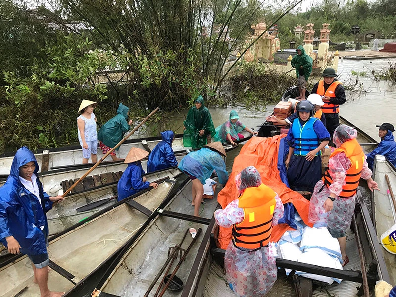 Đoàn của báo Pháp Luật TP.HCM đã trao 400 suất quà của bạn đọc và mạnh thường quân cho 400 hộ dân bị ảnh hưởng nặng bởi lũ lụt vừa qua tại thôn Phú Kinh, xã Hải Phong, huyện Hải Lăng (Quảng Trị). Mỗi suất quà gồm: một thùng mì tôm, 5 kg gạo, bánh mì, nước mắm, sữa tươi và bột ngọt.