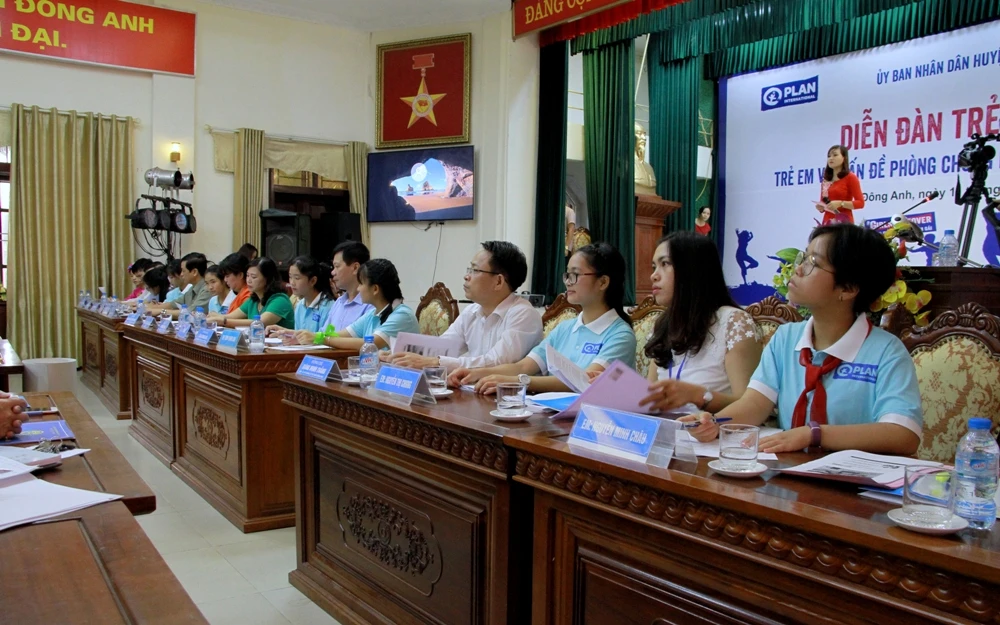 Ngày 11-10, Tổ chức Plan International Việt Nam phối hợp với UBND huyện Đông Anh (Hà Nội) và Viện Phát triển sức khỏe cộng đồng Ánh Sáng (LIGHT) tổ chức Diễn đàn trẻ em 2017 “Trẻ em với vấn đề phòng chống bạo lực, xâm hại trẻ em và sự kiện trao quyền cho em gái".