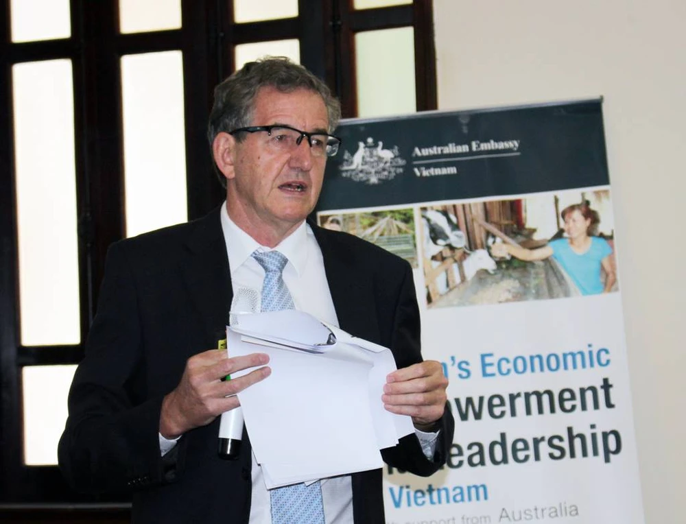Ông Raymond Mallon: "Trao quyền cho phụ nữ giúp tăng 26% GDP thế giới". Ảnh: CHÂN LUẬN