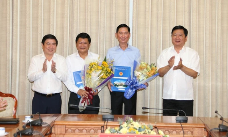 Chủ tịch UBND TP Nguyễn Thành Phong chúc mừng hai vị phó chủ tịch mới, bày tỏ mong muốn hai ông sẽ nêu cao tinh thần trách nhiệm, quyết liệt trong công việc, phối hợp tốt với các thành viên ủy ban để hoàn thành tốt nhiệm vụ được giao.
