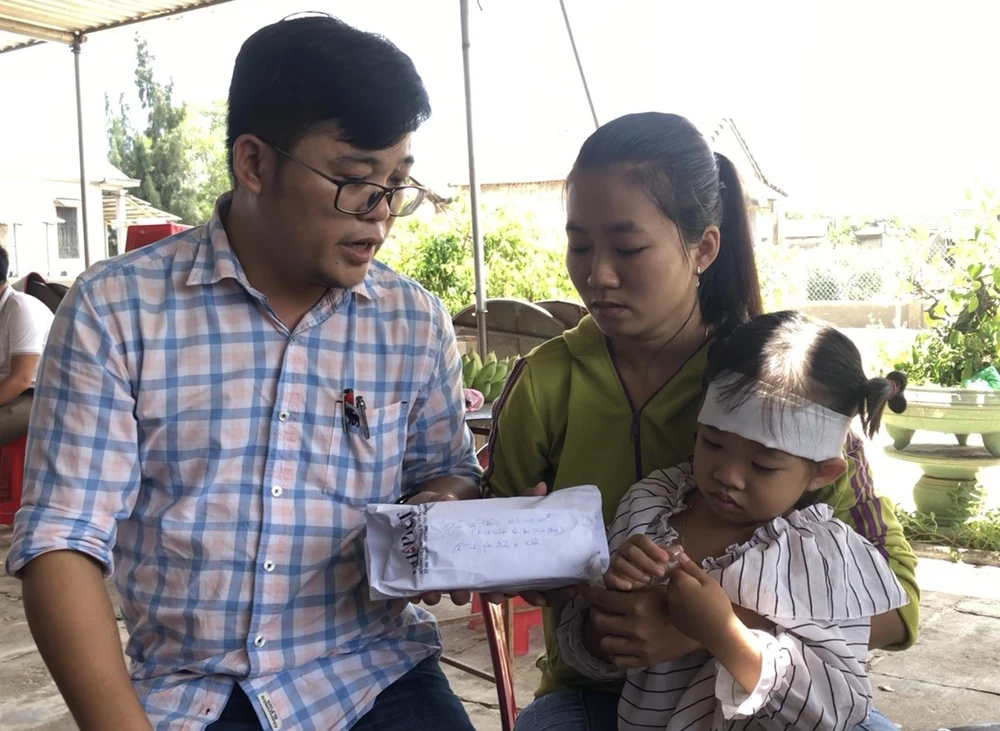Đại diện báo đã trao số tiền trên cho chị Phan Thị Trúc Ly (vợ anh Khải) và gia đình anh Khải.