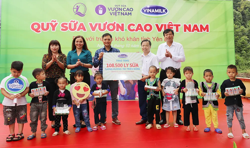 Năm 2020, Vinamilk và Quỹ sữa Vươn cao Việt Nam trao tặng 108.500 ly sữa, tương đương khoảng 780 triệu đồng cho 1.200 trẻ em có hoàn cảnh khó khăn tại tỉnh Yên Bái. Qua đó, mang niềm vui uống sữa cho hàng ngàn trẻ em đang được nuôi dưỡng tại các trung tâm bảo trợ xã hội và các cơ sở nuôi dưỡng trẻ em mồ côi, khuyết tật; trẻ em ở những vùng cao khó khăn, những nơi ít được quan tâm hỗ trợ dinh dưỡng.