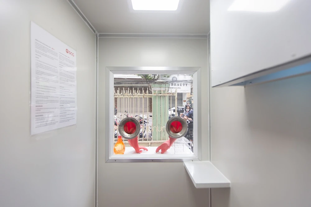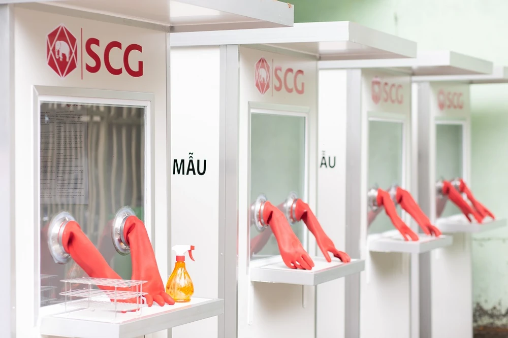 Trong quá trình thu thập mẫu bệnh phẩm, các y bác sĩ rất dễ bị tiếp xúc trực tiếp với virus thông qua các giọt bắn siêu nhỏ được phát tán khi người bệnh nói chuyện, hắt hơi hoặc ho. Do vậy, SCG đã thiết kế và chế tạo các phòng áp lực dương kháng khuẩn di động nhằm hạn chế tối đa sự tiếp xúc trực tiếp giữa người thu thập mẫu và người cung cấp mẫu bệnh phẩm, bảo vệ an toàn cho đội ngũ y tế.