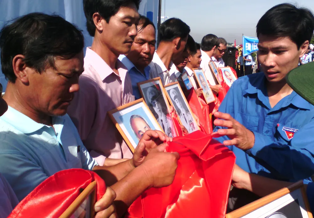 Trao cờ đỏ sao vàng, ảnh Bác Hồ và Đại tướng Võ Nguyên Giáp cho các đội tàu cá đánh bắt xa bờ tại thị trấn Thuận An.