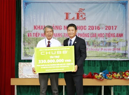 Cụ thể, thông qua Quỹ Hỗ trợ phòng tránh thiên tai miền Trung, Quỹ Chubb Charitable Foundation - International phối hợp cùng Chubb Life Việt Nam trao tặng máy tính, thư viện sách và phòng học tiếng Anh với tổng giá trị tài trợ là 900 triệu đồng cho bốn ngôi trường: Trường Tiểu học Xuân Lâm (Phú Yên), Tiểu học số 1 Triệu Độ (Quảng Trị), Tiểu học số 2 Quảng Thành (Thừa Thiên-Huế) và Tiểu học số 2 Vĩnh Thành (Nghệ An).