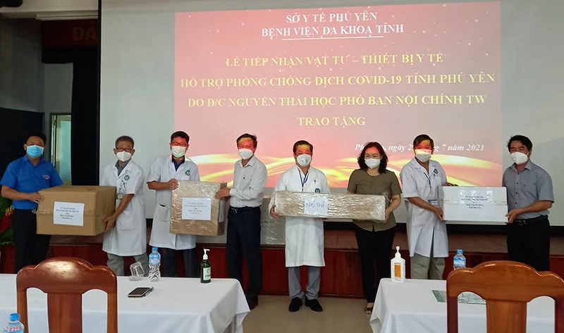 Tiếp nhận thiết bị, vật tư y tế do ông Nguyễn Thái Học, Phó Trưởng Ban Nội chính Trung ương vận động tặng tỉnh Phú Yên chống dịch. Ảnh: TRẦN QUỚI