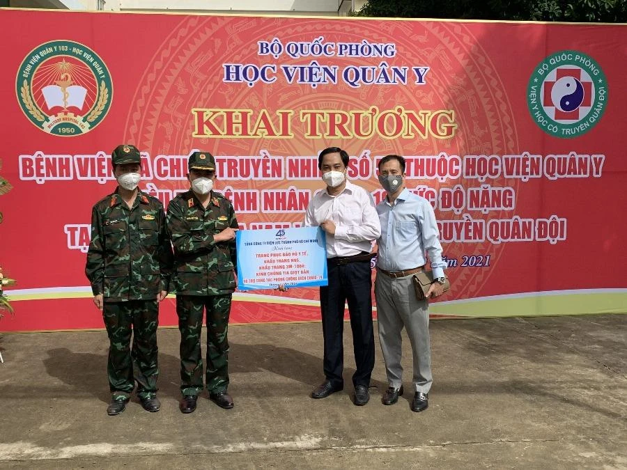 Tiếp nhận vật tư y tế trao tặng, Thiếu tướng, Giáo sư, Tiến sĩ Trần Viết Tiến – Giám đốc Bệnh viện Quân y 103 đã gửi lời chân thành cảm ơn Tập đoàn Điện lực Việt Nam, Tổng Công ty Điện lực TP.HCM đã hỗ trợ nhiều vật dụng y tế thiết yếu và đề nghị ngành điện hỗ trợ trang bị thêm khoảng 10 máy thở cho Bệnh viện dã chiến 5G.