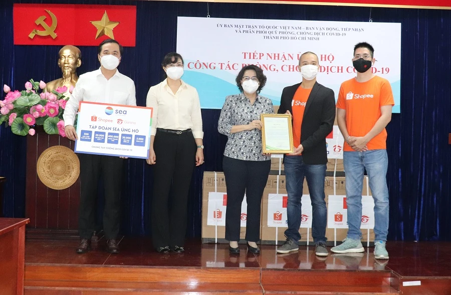 Phát biểu tại buổi tiếp nhận, Chủ tịch Ủy ban MTTQ Việt Nam TP.HCM Tô Thị Bích Châu gửi lời cảm ơn đến Tập đoàn Sea và Công ty Shopee Việt Nam.