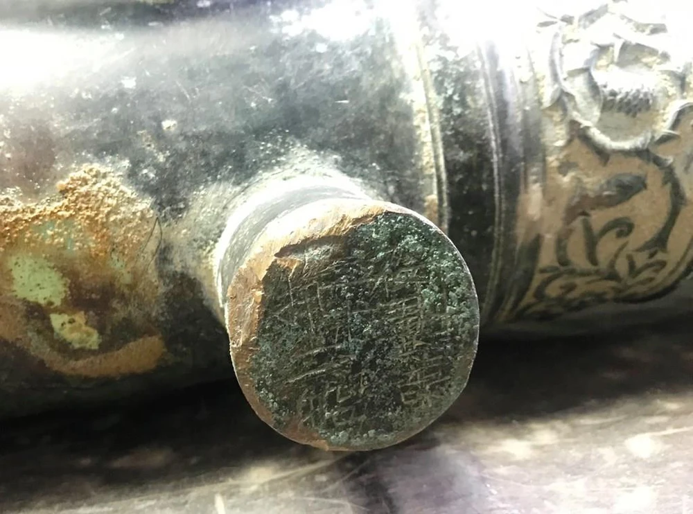 Một số hoa văn trên súng thần công. Ảnh: HẢI HIẾU